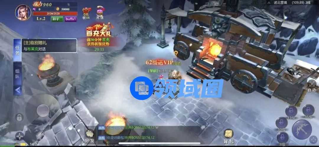 在游戏的具体玩法上,标志性的VIP界面以及魔幻MMO挂机玩法都让人倍感亲切,职业首推“圣战士”而不是法师,无疑在强调这是《艾尔登环》而不是《艾尔登“法”环》。此外,自动寻路,挂机升级,将“传统”的经典手游玩法隐藏在“魂系”品类之下,通过轻松上手的实际体验和“魂类”硬核难度的传统观念进行差异化的处理,从而带给所有进入游戏的玩家一种“反差式”的惊喜感。
