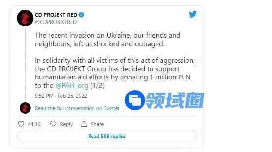 目前,不少海外游戏企业与开发者都谴责俄罗斯的行为并向乌克兰表示支持,在过去的2周时间里包括CDPR、育碧、Techland、 Bungie、11Bit、Unity等在内的公司都做出了表态,或禁售游戏与支付,或取消电竞资格与席位,甚至直接向乌克兰相关红十字组织捐赠。