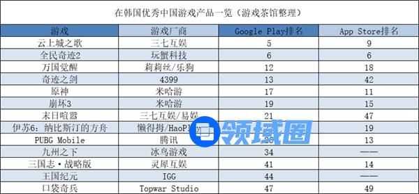 在本期榜单上,《荒野行动》与《云上城之歌》分别是出海日本、韩国在当地畅销榜上排名最靠前的国产游戏。