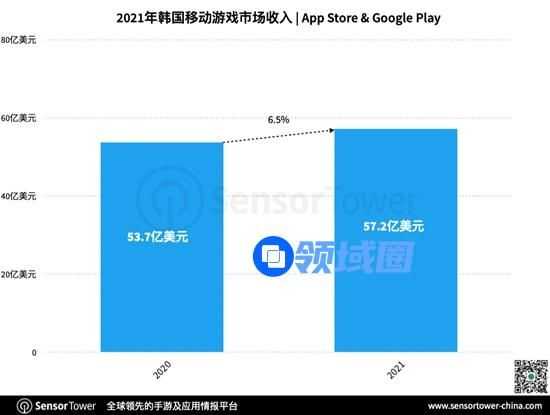 再来看韩国市场。Sensor Tower近期报告指出2021年韩国手游市场收入约57.2亿美元,同比增长6.5%,持续保持增长势头。