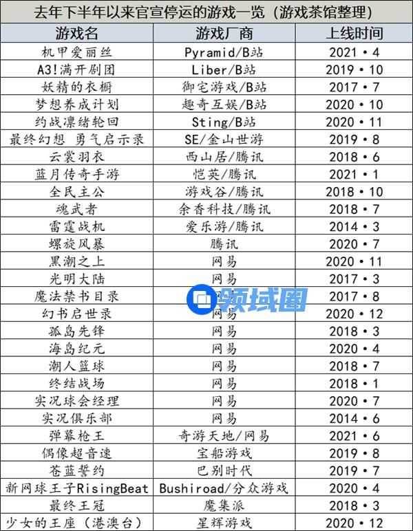 自去年下半年游戏环境变化后,不少游戏公司经仔细审视手中产品组合,决定将一些老游戏、表现不及预期的游戏关停,以节约成本。游戏茶馆根据公开信息,整理了部分去年下半年以来官宣的停服游戏。
