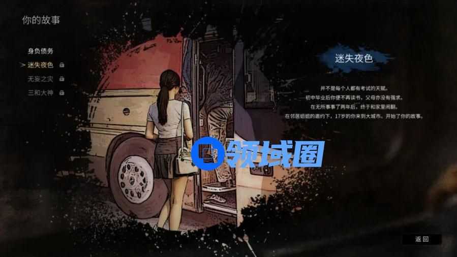 剩下的几个剧情,迷失夜色是扮演一位在学业上稍显吃力的女性,初中毕业后便来到大城市闯荡;无妄之灾官方并未创作完成,从字面上来看,可能主角会带着更加苛刻的状态来开局;而三和大神并非是传统意义上的意思,而是让玩家来自己自定义属性,也算是创造一个让自己满意的人,来度过自己更想要度过的人生。
