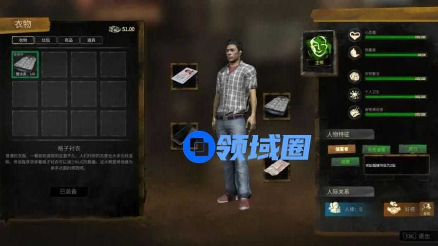 “衣物整洁”“个人卫生”则更多是影响卫生这一结构,捡废品和搬砖是玩家初始时需要依赖的获取收入的手段,不过日常生活工作和捡废品都会弄脏玩家的衣物,这种臭烘烘的状态会降低玩家的自信,也会让周边人对主角感到厌恶。“个人卫生”也是如此,只不过解决这两种“脏”的方法不同,对于衣物是清洗或者直接更换,而身体则只有清洗,玩家也可以去厕所的洗手池里去洗澡,只不过有一定概率感冒。