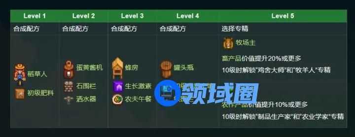 比如对于耕种来说,前5级可以解锁的道具如下图所示: