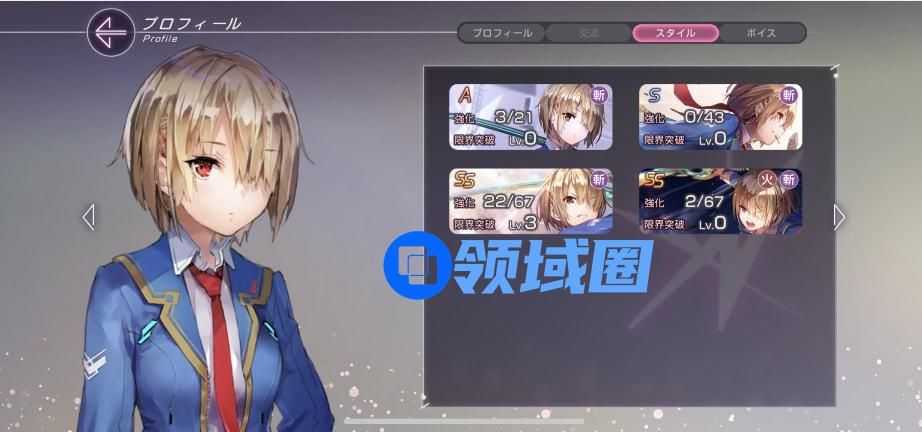 一名角色本身可对应多张可操作卡牌,游戏中称为形态(スタイル)。与类似设计最大的不同在于所有卡牌共享等级,而技能与天赋部分独立成长,这样部分减少了前述强制培养A卡的沉没成本,也为一些暂时没有高阶卡但绘制很好看的角色增加了出场概率。