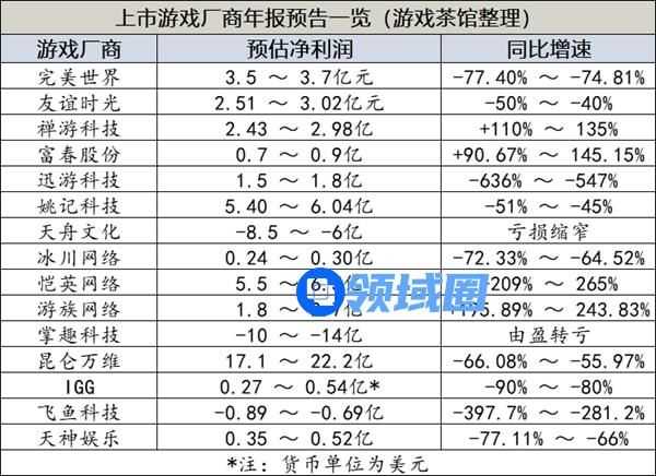 根据上市公司发布的2021年业绩预告,游戏茶馆将相关数据整理成如下表格: