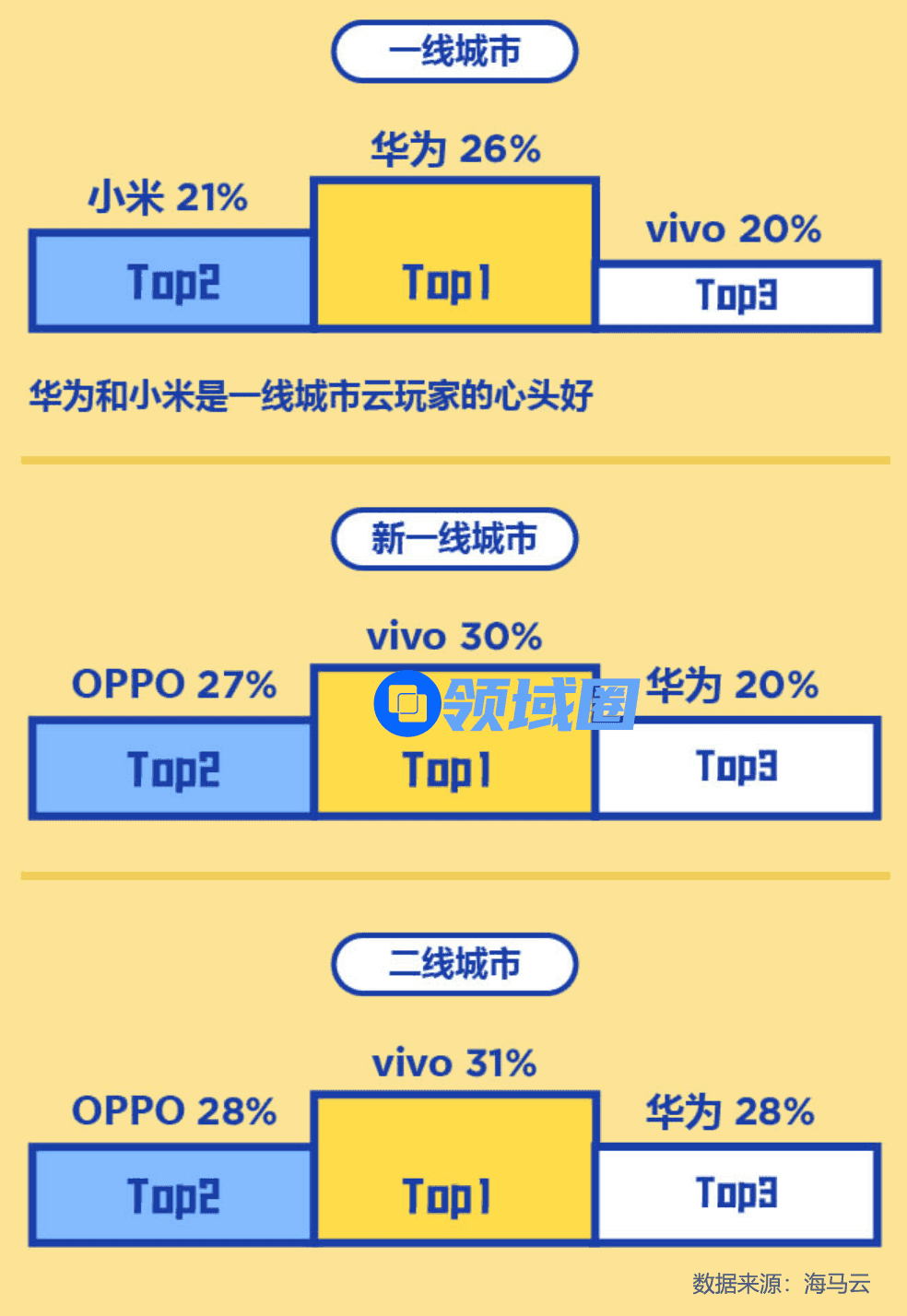除了以上三点行业观察,数据还披露,云玩家在选择手机品牌方面,一线城市云游戏用户更青睐于华为和小米,而新一线城市和二线城市vivo + OPPO的占有率均超过50%。