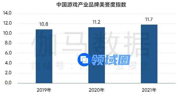 2021年中国游戏产业品牌美誉度指数达11.7,连续两年增长