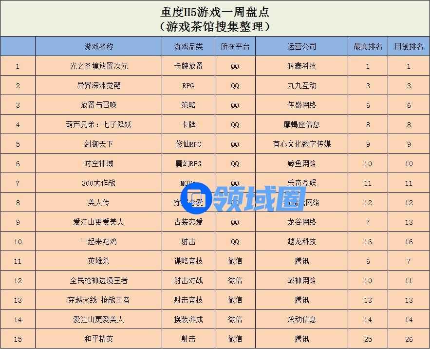 重度H5游戏:《光之圣境放置次元》再次登顶,《异界深渊觉醒》登榜TOP3