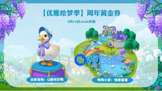 除了【莫奈花园】主题皮肤的上线,本次《梦幻花园》五周年嘉年华庆典,还上线了众多福利活动,可爱的新宠物柯尔鸭温妮,带着它的恬静莲塘,早在9月15日就已经与各位玩家们见面。