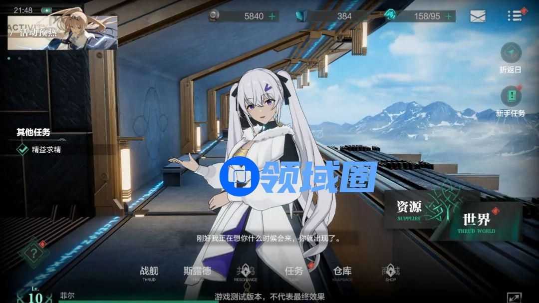 再来是游戏的其他玩法,目前除了基础的主线和资源副本外,游戏的特别玩法【意识深浅】和在主线中短暂出现的箱庭家园玩法【舰桥】在这次版本测试并未开放,当前版本整体玩法上相对贫瘠,但前面两者的实装会一定程度缓和这种局面。