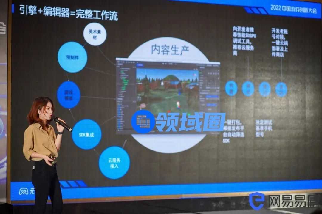 Cocos 作为行业主流 3D 开发引擎,其生态总监李阳解读了 Cocos 引擎在游戏开发各个环节上的助力。她表示,Cocos 是世界首个为手游开发提供便利工具和服务的供应商,以开放生态希望与开发者共赢为愿景,向游戏开发者提供底层技术,具备高性能、可定制、易上手、包体小的优势。