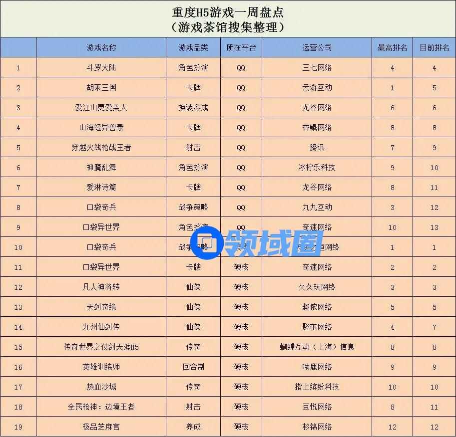 重度H5游戏:《斗罗大陆》重回榜首,《极品芝麻官》排名上升