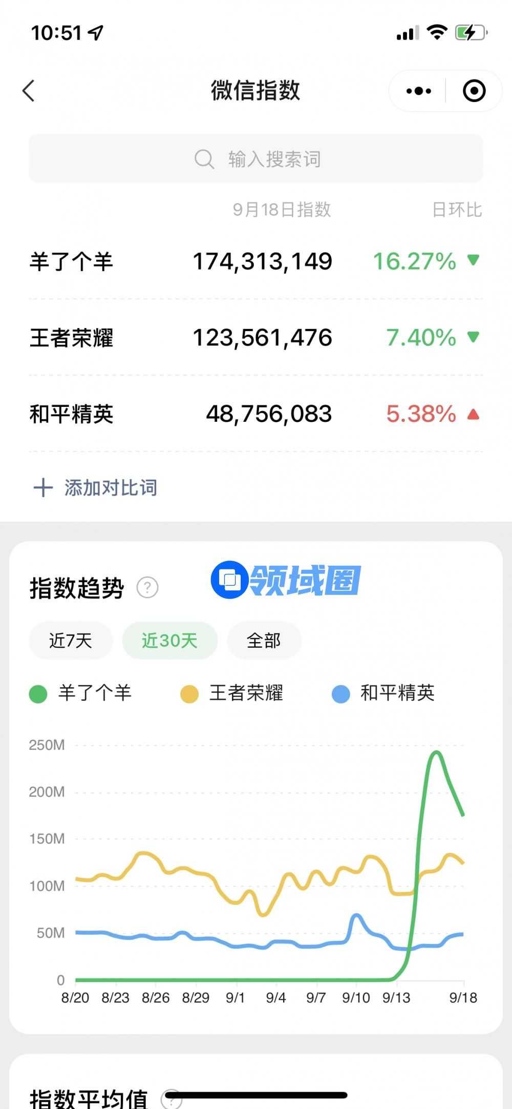 微信指数为类似“微博热搜”的微信关键词工具,以搜一搜、视频号、公众号文章、网页及广告渠道的热度影响综合而来,受此波热度影响,被玩家认为是其借鉴原型的休闲游戏《3 Tile》目前居于国服App Store商店免费榜榜首。根据简游科技透露,《羊了个羊》App应用已提交苹果商店审核,未来不久将与大家见面。