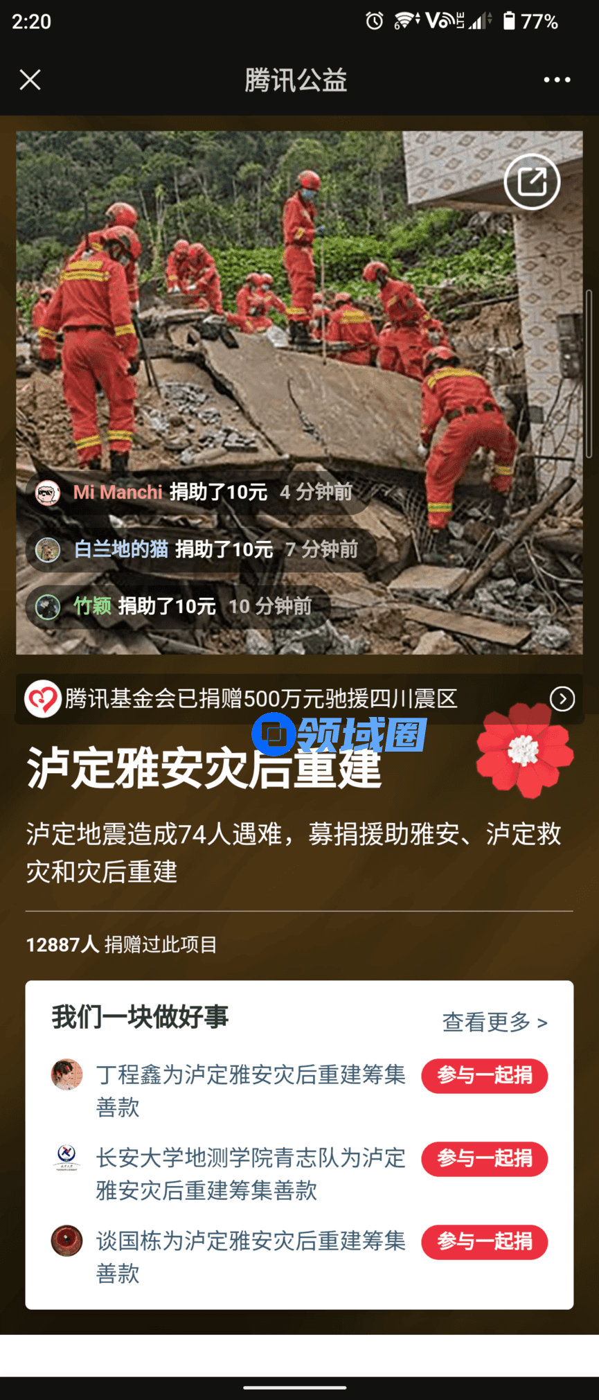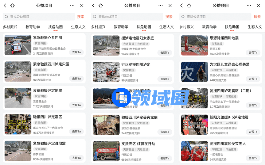 腾讯公益平台第一时间上线支援泸定灾区的众筹项目,根据茶馆统计目前可以搜索到23个泸定地震相关的众筹项目,其中由四川省灾后重建基金会发起的“泸定雅安灾后重建”项目有近1.3万人献出爱心,凑得资金近58万元,首批救灾物资已经于9月10日上交给石棉县政府统筹发放。