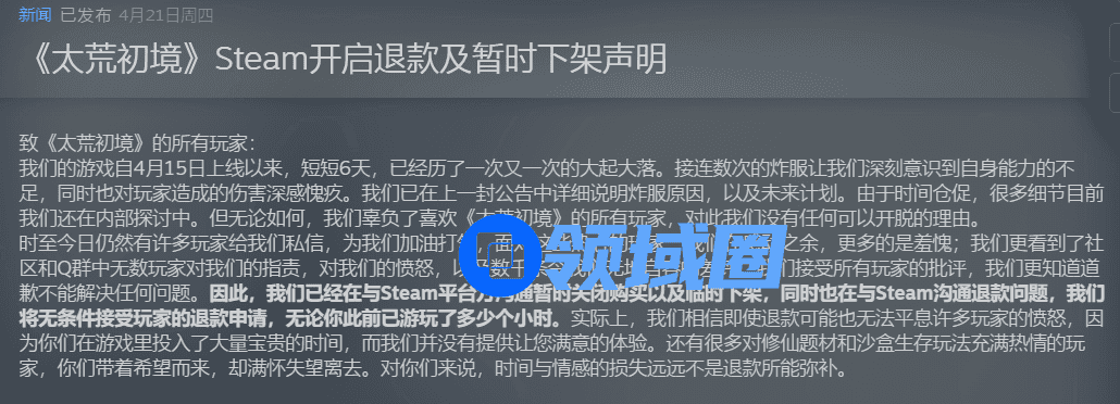 尽管后续老刘想尽了办法,又是夜以继日的更新内容修复BUG,又是无条件开放退款通道,正如大部分人预料的那样,这款游戏最终还是被玩家判了“死刑”。