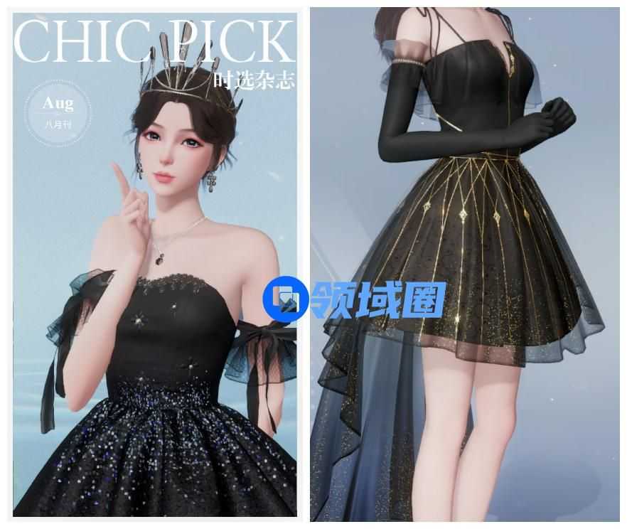 黑色抹胸短裙套装,则在蕾丝质感和镶金视觉冲突上拿捏的恰到好处,双肩搭配黑色蝴蝶结,蜜桃色的眼妆与裙装的黑色俏皮相呼应,甜辣氛围拉满让职场精英一秒变身时髦辣妹。