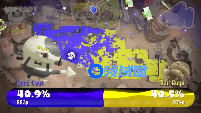 《斯普拉遁》的经典模式中,玩家需要争夺的是地图,谁把自己的墨汁涂在地图上的越多,谁就能获胜。击杀对手依然是一个能给己方提供优势的方式,但不能决定性的赢下这局游戏,甚至能起到的作用也十分有限,相反,就算你一个人不杀,一直涂地也能给队友来带十分强力的帮助,这就要说到《斯普拉遁》的循环系统了。