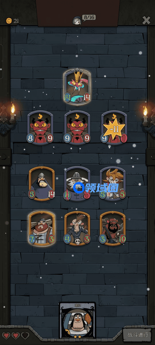 在游戏的最开始,玩家会获得一些基础卡牌,游戏界面上将会有三个随机选项供玩家选择,有战斗,卡牌获取,增益事件和随机事件等几类。游戏过程中,玩家通过战斗升级解锁更多的手牌上限和抽牌上限以及角色的职业技能,无论升级还是随机事件都有机会获得新的卡牌和增益效果。数百张卡牌给了玩家足够多的策略选择空间,根据自己的职业和对手进行卡牌库的搭建。