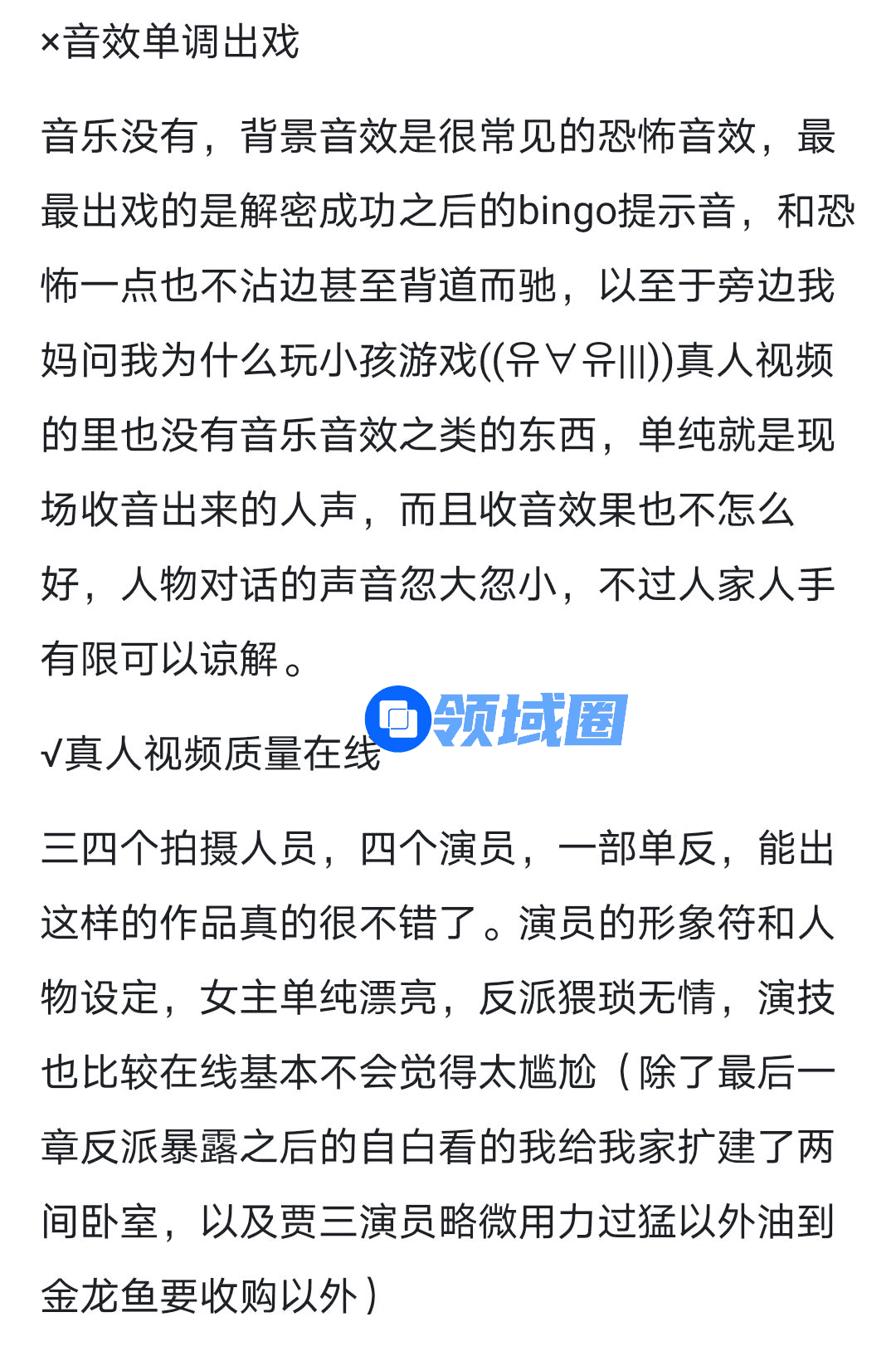这个不同方式指的是真人互动+线上密逃。从真实游戏体验来看,游戏形式为密室实景拍摄的视频作为剧情过渡加线上解谜。线上解谜还原线下密室沉浸感,视频则为第一人称视角,更加具有沉浸和代入感,镜头切换也很流畅自由。整体说来,《情棺》为中式恐怖解谜探索出了新的呈现方式,因为有时较恐怖,我亲测游玩时手机会自动拉远。不过,预期中的如《隐形守护者》那样的互动感并没有给到,且视频与线上解谜的切换也太生硬,没有过渡感。
