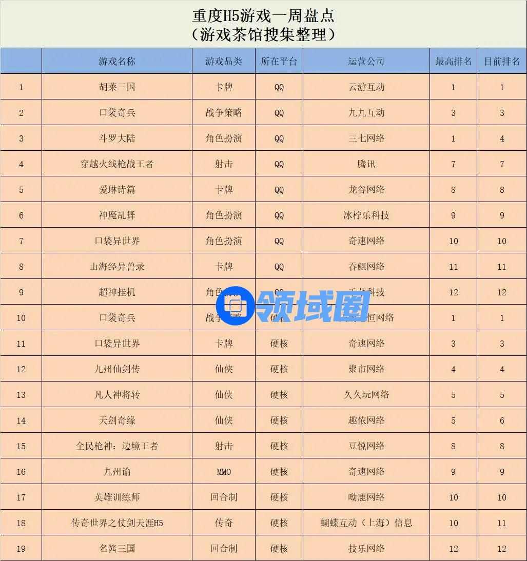 重度H5游戏:《胡莱三国》重回榜首,《名酱三国》排名上升