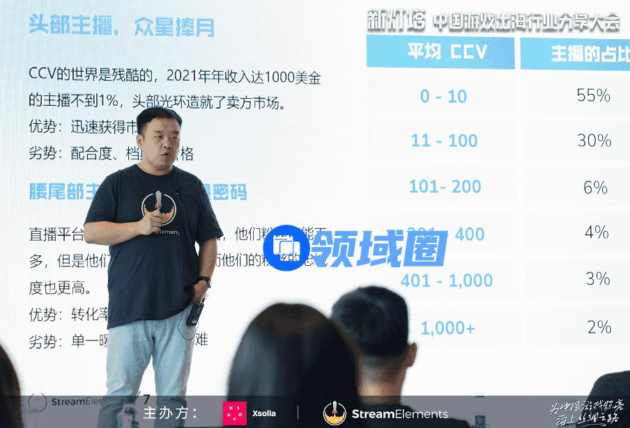 StreamElements大中华区总经理于江雪的现场演讲不仅介绍了StreamElements的相关内容,也介绍了海外视频平台的相关数据,他从海外主播现状、如何寻找主播、用什么维度去筛选出最合适产品的主播等方面分享了他丰富的行业建议和经验。
