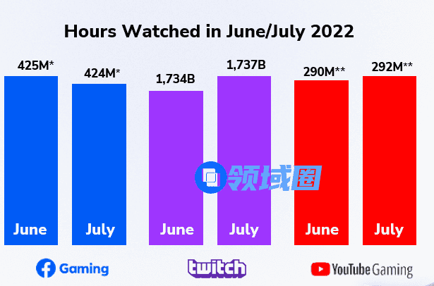 今年上半年,在数据持续下跌三个月后,从4月份至今,数据峰值明显回升,对比6月和7月的数据我们有理由相信收视率已经趋于平稳。但尽管如此,与2020年前四个月同期比较,Twitch增长了64%,FB Gaming增长了118%。