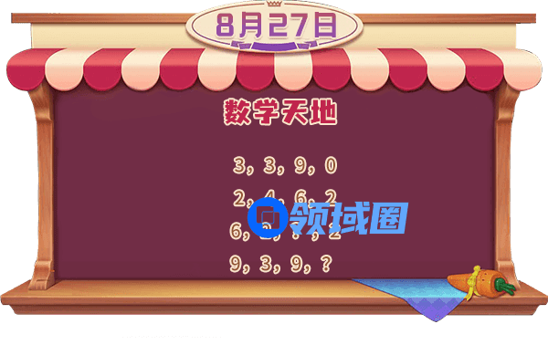 现在开始解答!计时开始!——聪明的小伙伴已经知道答案了哦!其实这道题目非常简单,是一道非常常规的数学规律题。在各个数字之间添加运算符,即可得到答案,经过简单的计算,我们可以准确得出:3x3-9=0,2x4-6=2,所以接下来:6x2-10=2,9x3-9=18,正确答案为:1018,你答对了吗?