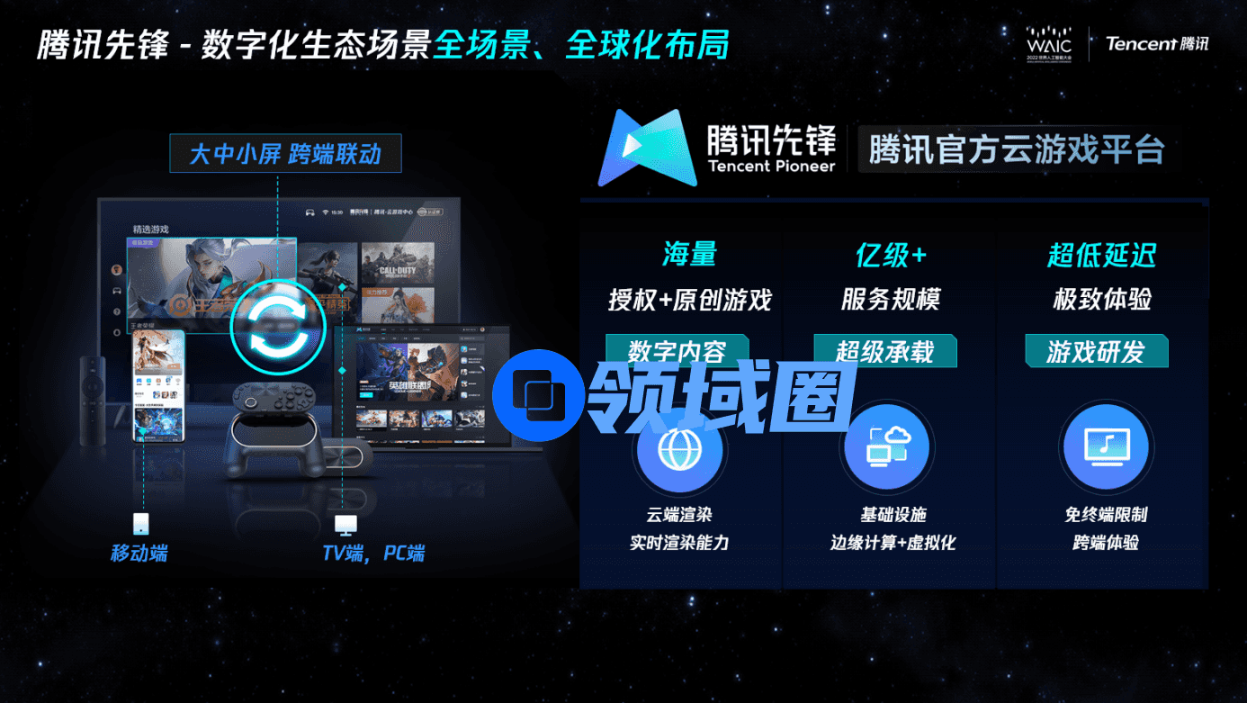 面对这个话题,腾讯先锋云游戏总经理、腾讯互娱品质管理部总经理荆彦青先生在刚刚结束的2022WAIC腾讯论坛【瞰见】上,用名为“云游戏共创超级数字生态”的主题演讲,给出了自己的看法。