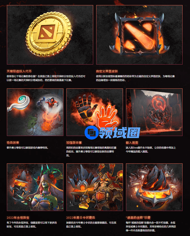 以上就是本次2022年勇士令状的部分内容介绍,想要获得更多详细内容可以进入专题页(https://www.dota2.com.cn/battlepass2022/)或游戏客户端内查看。