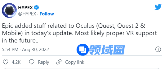 按照HYPEX的说法,这表明在未来,《堡垒之夜》很可能会提供对VR的支持。