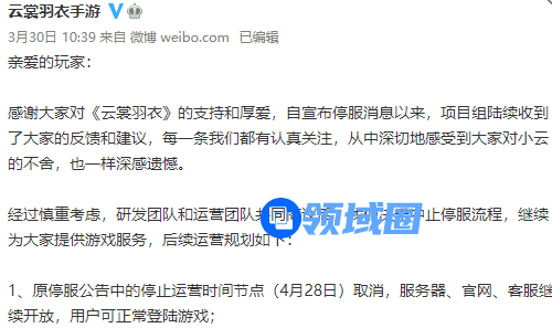 今年也曾有另外一款女性向精品《云裳羽衣》在今年2月公布即将停运,最后经过玩家推动,中消协出面,最终宣布中止停运。