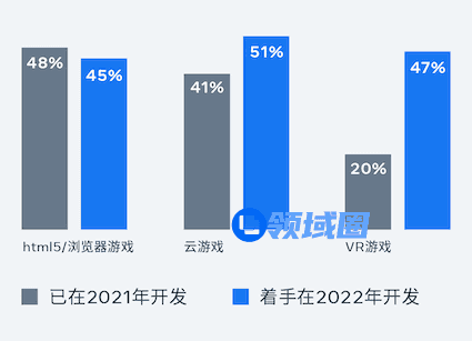 事实上,半数受访者均表明,2022年,除了打造本地的iOS/安卓游戏应用,他们也已着手构建浏览器游戏、云游戏和VR游戏。[2]