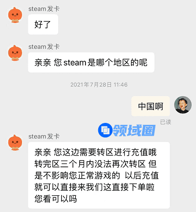 近几年Steam对于违规充值、代充的打击力度一直居高不下,我身边就有很多小伙伴因为转区被锁了,有些再也转不回来,有些直接steam被锁定,彻底凉凉,而某宝店铺才不会管你这些事情,一开始还安慰你一下,后面直接不回消息,一切努力都付之东流。