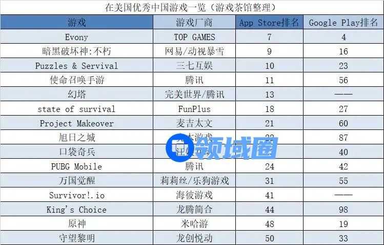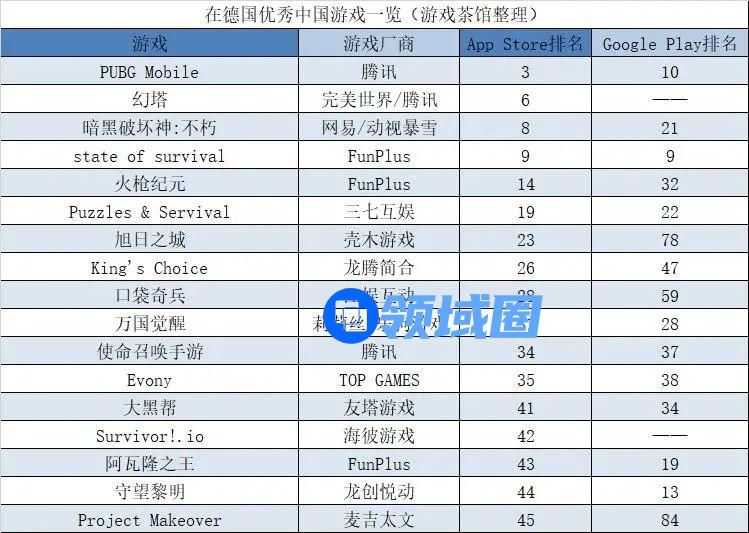 TOP GAMES打造的《Evony》和腾讯的《PUBG Mobile》是出海美国与德国的游戏中,在当地畅销榜排名最靠前的游戏。