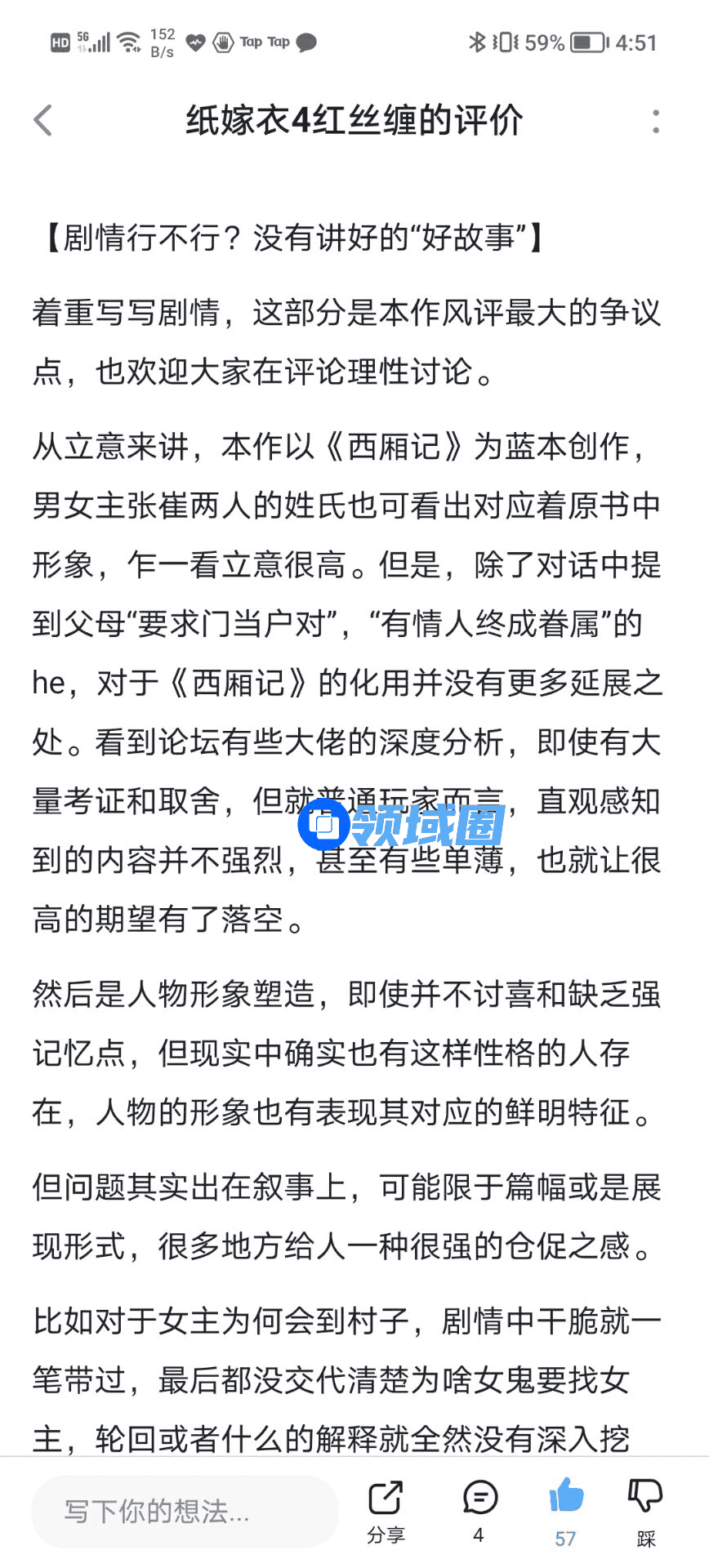 纸嫁衣系列作品中评分均在9分左右,《纸嫁衣4》也不例外,目前TapTap评分9.2。