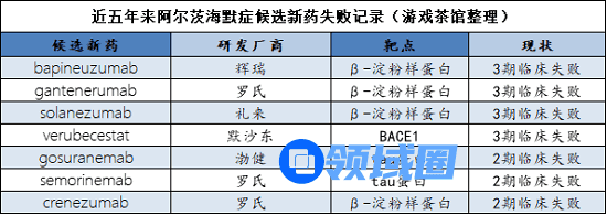除了罗氏外,游戏茶馆观察还有辉瑞、默沙东、渤健、礼来以及诺华等国际医药巨头投身阿尔茨海默症新药研发当中,砸了无数的人力物力和财力。据统计,自2002年以来全球已在阿尔茨海默症上烧掉了数千亿美元的经费。但基本没有达成突破性进展,失败反而是比比皆是。