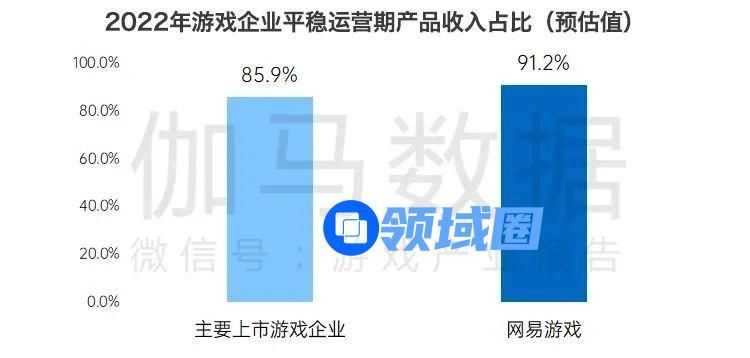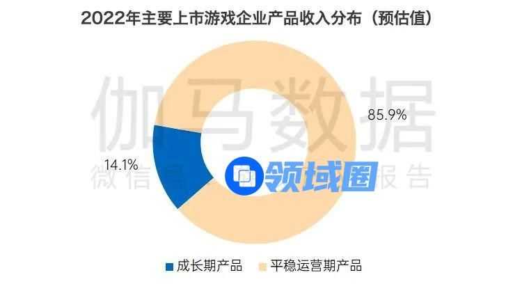 如前所述,产品稳定性将通过减少新品压力、降低增长门槛的方式作用于企业发展。伽马数据认为当前主要上市游戏企业具备较强的稳定性,这是由于2022年平稳运营期产品的流水贡献比例有望达85.9%,占比较高,可以持续发挥营收效果。
