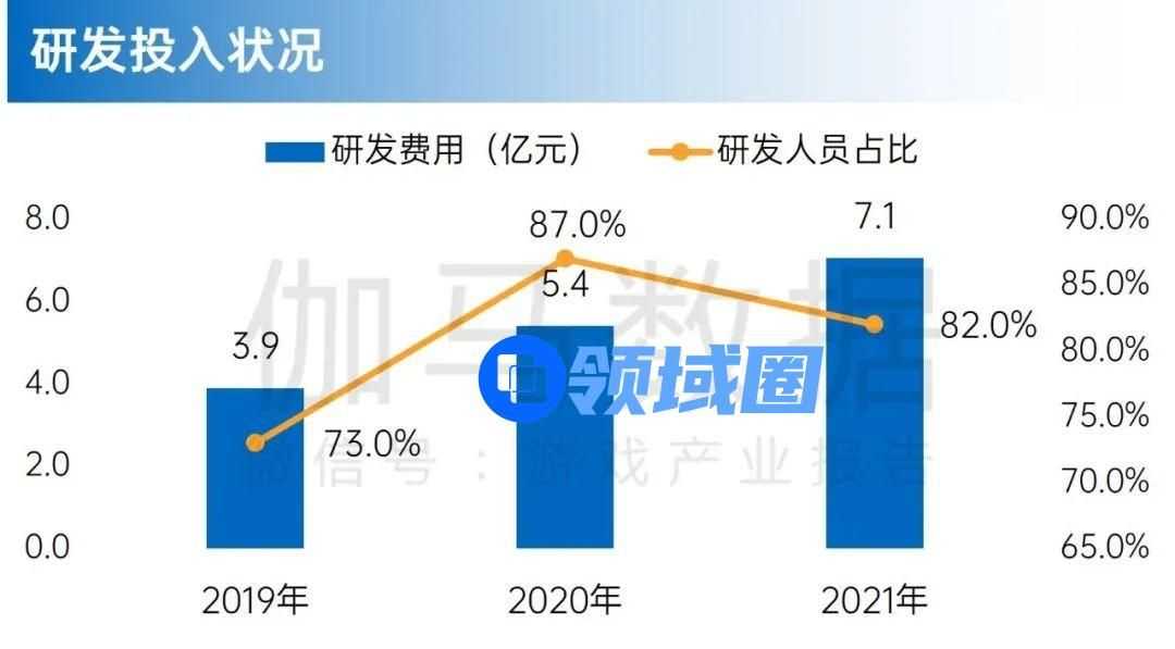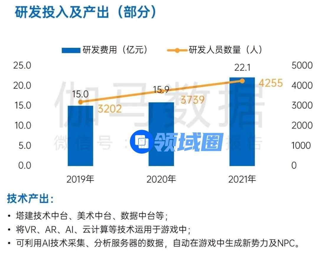 组织改革方面,游族网络在2021年对研发部门的组织架构进行集中改革,将五个研发工作室升级成为一级部门,使其拥有更多独立经营和决策权;同时成立创新研究院,主要负责技术突破、艺术探索、创新品类延展、对工作室和赛道的支持,并明确每年将投入不低于10%的毛利用于次世代技术产品、创新类项目和产品的研发与投资。