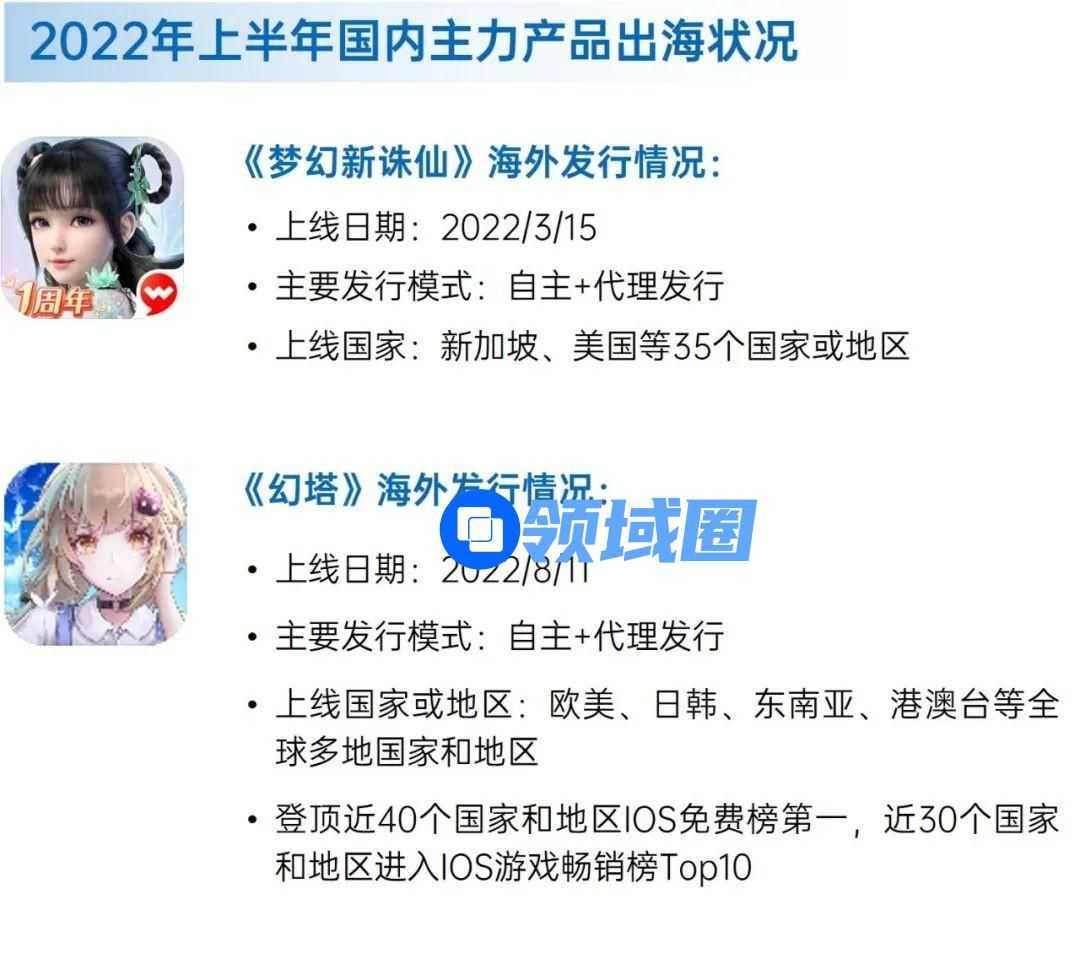 2021年三七互娱的出海收入达47.77亿元,增速超120%,伽马数据认为企业的出海收入仍将呈增长趋势。现有产品方面,《Puzzles & Survival》对三七互娱出海收入影响较大,该产品2022年上半年取得同比增长,对总收入起到保障及促进作用;其他产品也在逐步拓宽出海范围,例如日韩、欧美,增加收入来源。新产品方面,截止2022年7月三七互娱已在海外上线约10款产品,另有多款储备;同时,近年来三七互娱新品的全球化特征更为明显,多款产品立足于全球市场进行研发,并融入各地用户普遍偏好的元素,例如消除、魔幻,进而有助于提升产品的海外竞争力。
