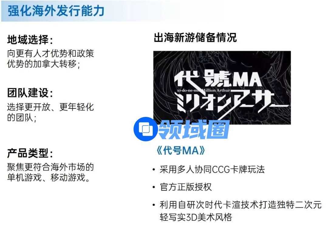 海外市场成为游族网络的持续发力点和业绩增长重要引擎。从已有成果上看,自2016年起游族已连续六年海外收入超过十亿元,海外收入累计超百亿元,2021年海外收入20.09亿元,占总营收比重、毛利率均有提升。海外市场表现的成因上,游族网络明确了“全球化卡牌+”战略方向,并持续推进新品游戏全球发行,现阶段已经构筑起一套成熟专业的全球化发行体系和高效打法;同时,游族网络于2021年下半年完成了发行架构的调整,整合国内外发行团队、成立全球发行事业部,通过各部门的融合重组及发行团队内部竞标制度等系列措施,进而提升发行质量及效率、作用于出海表现。