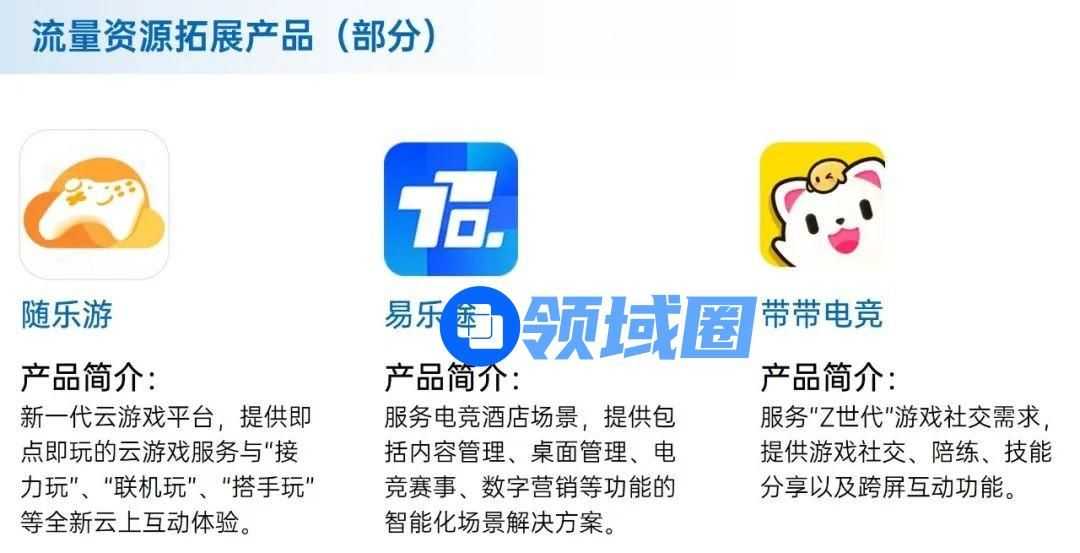 盛天网络面向游戏企业的互联网营销也取得较多收入增量,同时也是伽马数据看好的增长来源,看好原因由产业背景与企业业务特点两方面共同组成。产业背景方面,游戏产业对营销的重视程度及布局力度持续攀升,较优的营销资源整体处于供不应求的状态,因此有望抬升盛天网络旗下平台的资源价值。企业业务特点方面,一方面,盛天网络可供展开营销业务的资源稳定性较优,例如易乐玩游戏平台已上线约8年;另一方面,盛天网络持续拓展流量资源范围,主动提升流量资源价值,针对新兴电竞酒店场景的产品“易乐途”已与美团酒店达成合作协议,年内有望快速拓展;同时已有多个结合企业优势与用户需求的方向切入的产品系列,例如兼具新互动社区属性的云游戏平台随乐游、电竞社交产品“带带电竞”,因此有望依托相关平台与业务协同,获取新增流量。