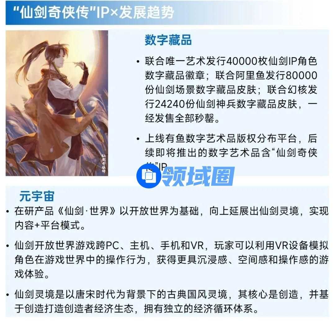 “仙剑奇侠传” 规划小说、数字藏品等领域
