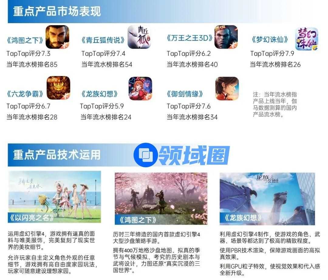 伽马数据认为研发能力是祖龙娱乐竞争力的核心来源。从成果上看,现有产品中7款上线当年进入伽马数据国内流水榜TOP100,且TapTap评分大多高于同类均值,一定程度代表用户对产品质量的认可。从布局上看,祖龙娱乐保持较高的研发投入,这将直接作用于技术、玩法创新等方面,例如祖龙娱乐多款基于虚幻引擎4研发产品的美术表现获得用户较佳评价。2022年,祖龙娱乐成为虚幻引擎5首批官方合作的5家中国企业之一,更多基于虚幻引擎4、5的产品已处于在研状态,有望在未来释放潜力。