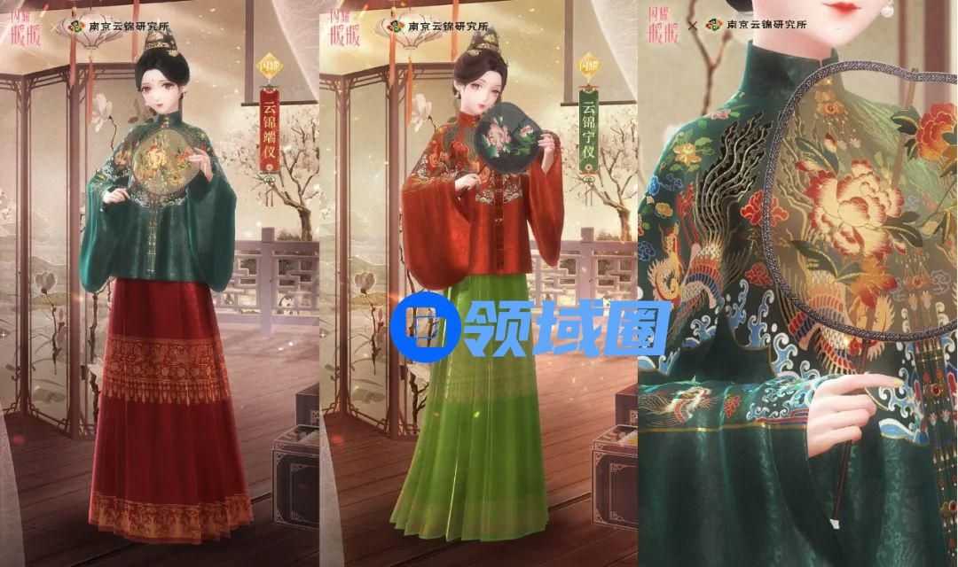 同样是与传统服饰文化的结合,游戏于 2 周年之际,则与南京云锦研究所跨界合作,采用“云锦”这一中国古老的织造技艺,耗费 8 个月织就了一套明代制式吉服,生动展现了云锦“天衣无缝、灿若云霞”的工艺特点。同时,《闪耀暖暖》还充分发挥对玩家群体的影响力,打造专属的“云锦课堂”进行知识科普,并于线下展出了联动服饰,吸引年轻圈层的关注,助力云锦文化进一步传播。