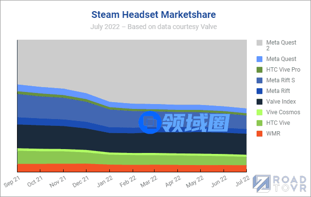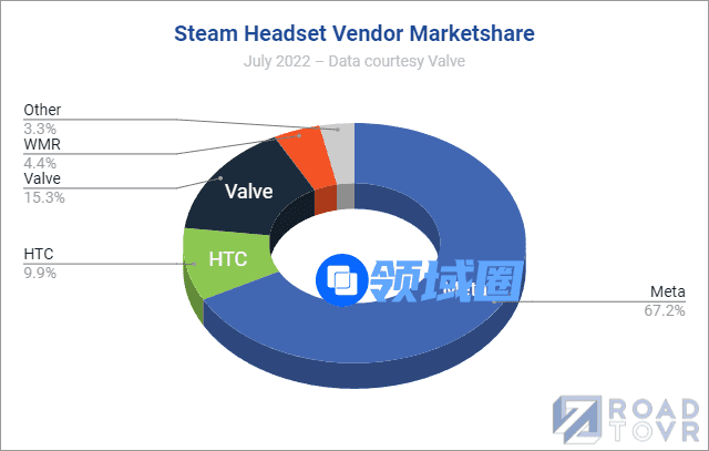 在Steam用户使用的所有VR头显中,Meta旗下头显的市占率仍然超过了三分之二。