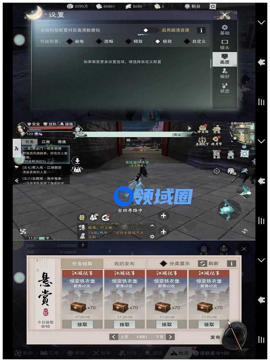进入游戏后,先看基础设置。雷电云的表现颇为意外,在一梦江湖中可开启最高档的极致画质,表现超过对手。在游玩画质较高的黑色沙漠时,雷电云也能顺畅运行。