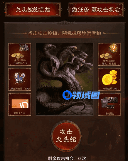 在7月28日至8月17日期间,下载登录Hello语音,点击进入游戏活动入口,即可参与活动。完成日常任务,即可获得攻击九头蛇机会,随机掉落珍贵宝物。一起来Hello语音寻找你的伙伴,一起畅玩暗黑魔幻大陆吧。