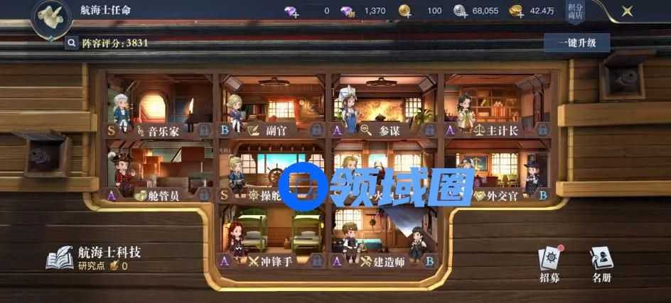 从体验来看,《黎明之海》确实给予了这些游戏感受,新鲜有趣、且不那么费劲。游戏整体的玩法分为探索、战斗、贸易。玩家通过前期的主线及必做等任务引导,逐渐解锁不同城市和港口。并且不间断免费获得皇家招募令抽取航海士,最终获得传奇号船舰。不需氪金,使用游戏发放的资源,很快就能招募各式历史人物塞满舰船舱,实现升级,促进角色成长。