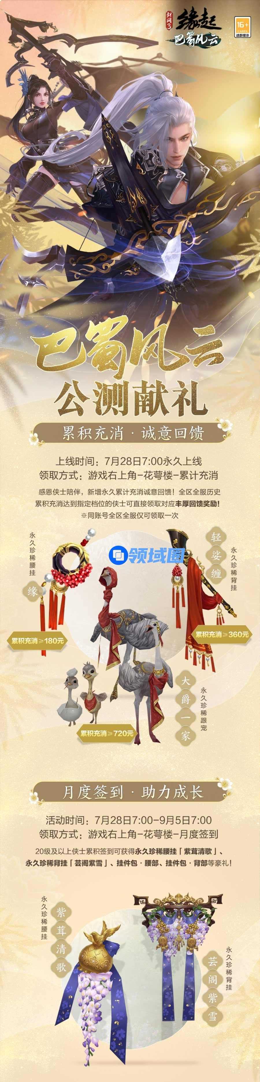 《剑网3缘起》年度新资料片“巴蜀风云”7月28日震撼公测,免费畅玩!新等级新门派新玩法全面来袭!多重福利助力侠士开启新征程,更有惊喜好礼放送不停!欢迎各位侠士重游故地,回到梦开始的地方,追寻昔日江湖情!